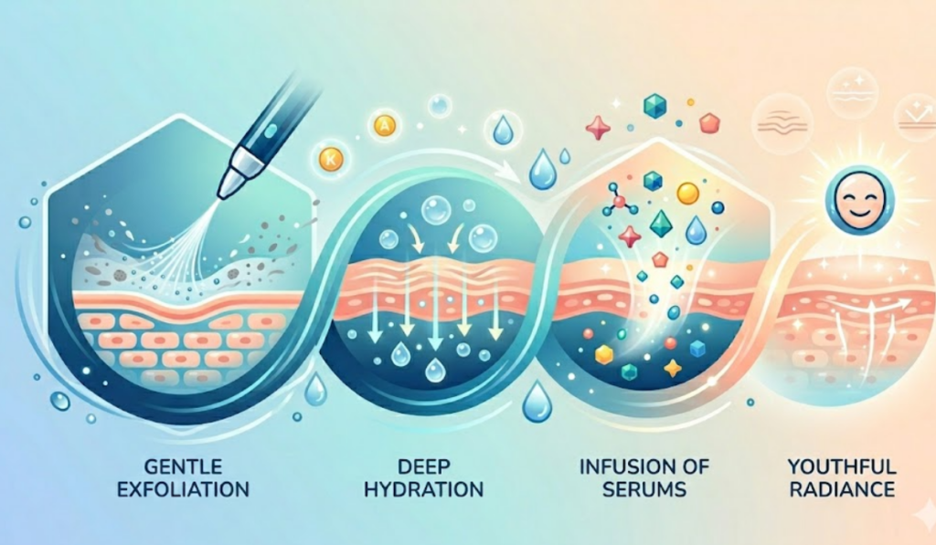 But how can a needle-free treatment cleanse, exfoliate, and deliver nutrients into the skin at the same time—without causing damage?