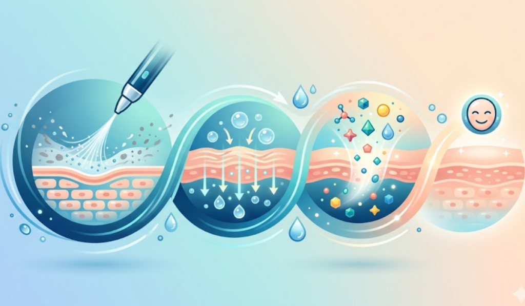 This process allows for effective penetration without needles, heat, or barrier damage, which is why it is often chosen for sensitive or reactive skin types.